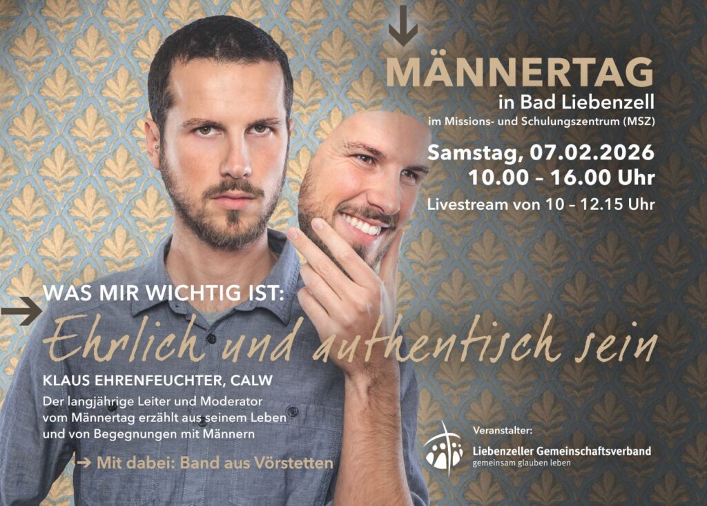 Mit KLAUS EHRENFEUCHTER, Calw. Der langjährige Leiter und Moderator vom Männertag erzählt aus seinem Leben und von Begegnungen mit Männern.